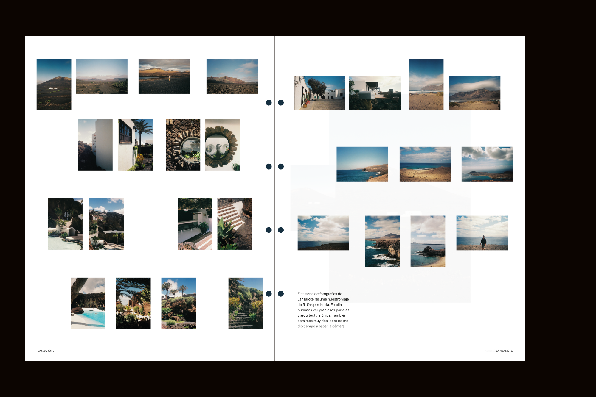 La maquetación debía respirar y transmitir la esencia de la fotografía analógica, dándole especial importancia a las imágenes respetando mucho los espacios en blanco, de forma que toda la atención la tomen las fotografías.